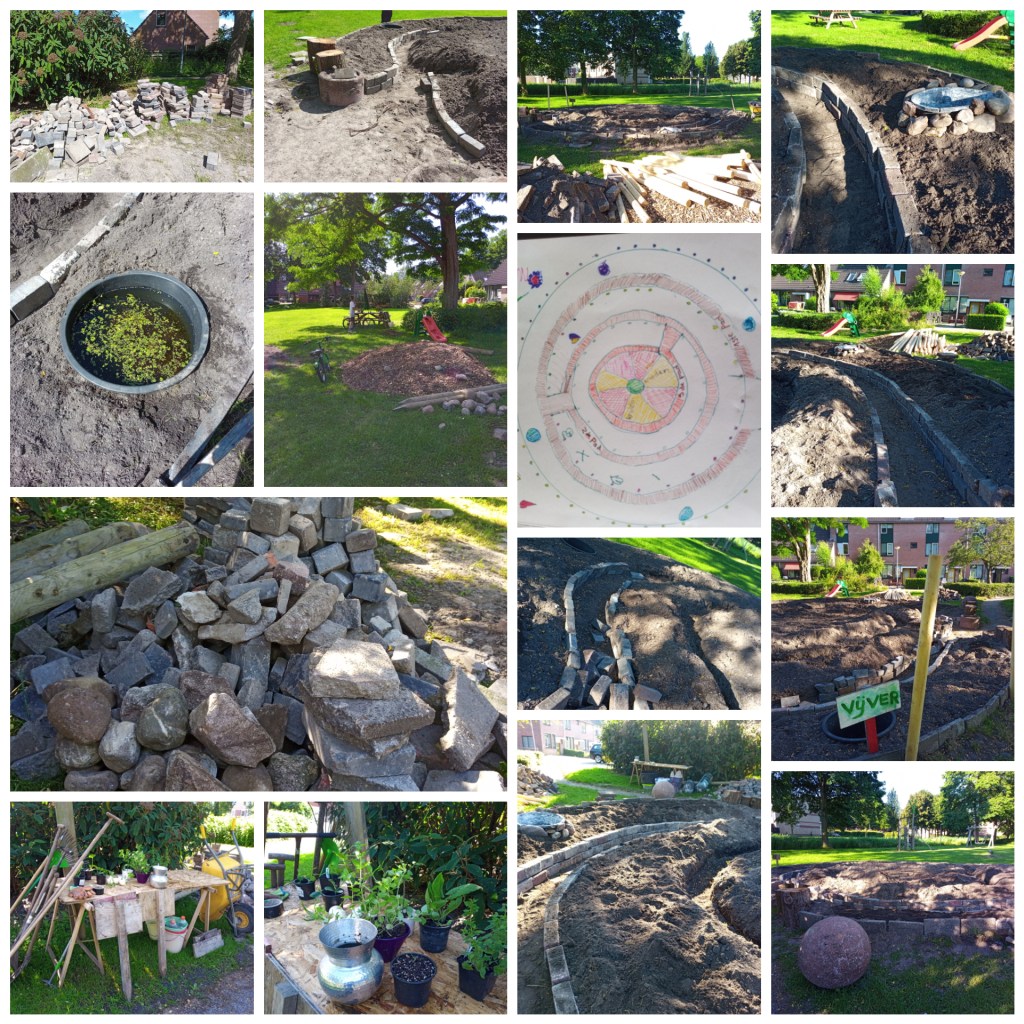 We hebben we veel plantgoed van de Gemeente gekregen, fruitbomen, druiven, bessen struiken, vlinderstruiken en kruiden. De bomen hebben de kinderen geplant en dragen hun naam. Iedereen weet van wie welke boom is. Dit om betrokkenheid bij de tuin te krijgen..