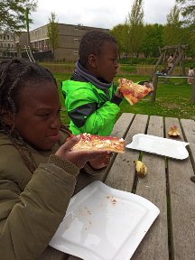 Deze activiteit bij de Torteltuin is financieel ondersteund door de bewoners organisatie Beijum. De BOB. Aan het einde van de middag konden de kinderen zelf een pizza maken die ze daarna heerlijk gingen opeten aan de picknicktafels.
