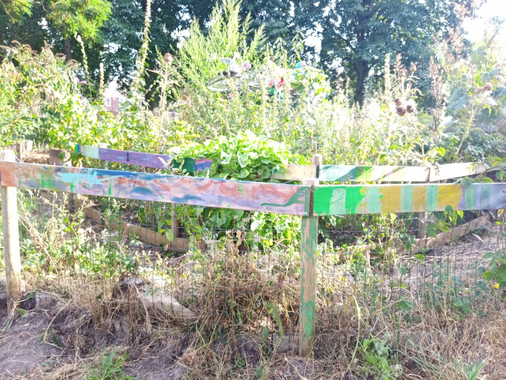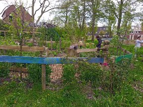 Het tweede jaar van de de Torteltuin begon met het versterken van de tuin. Er was in de winter veel gesloopt door pubers en kinderen, en bijna was ons de moed in de schoenen gezakt.