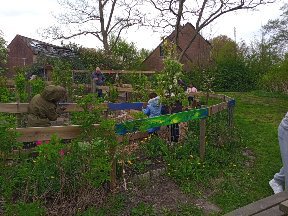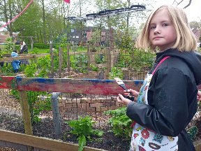 Dat alles samen heeft het de tuin vleugels gegeven. Maar ook alle hulp van buurtbewoners en support in de vorm van materialen is goed op gang gekomen. Mensen denken mee ook al helpen ze niet. Boven al heeft het enthousiasme van de kinderen ons erg gemotiveerd.