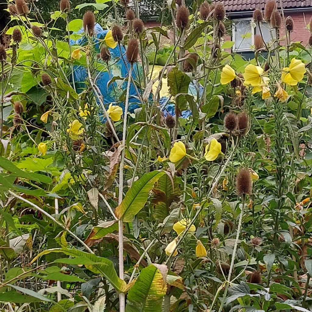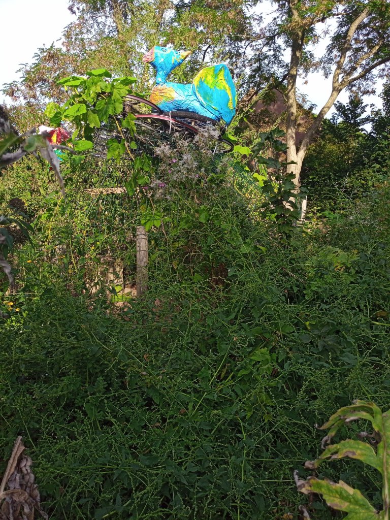 Dit seizoen hebben we de natuur zijn gang laten gaan zonder water te geven. En de natuur heeft de tuin mooi overgenomen met groen en zo water vast gehouden in de grond. Dat was voor bezoekers minder leuk om in de tuin te lopen. De binnenste cirkel is bv. Compleet dicht gegroeid. Er staan twee reuze Konings brandnetels die helpen ook goed mee de tuin te beschermen. Het is er enorm droog maar gelukkig word deze week regen verwacht. Net op tijd. Deze maand gaan we weer een tuinwerk dag organiseren met soep natuurlijk. Of stampot van de eeuwigemoes struik die maar steeds doorgroeit. De datum maak ik bekend via onze app groep