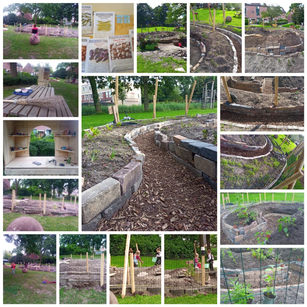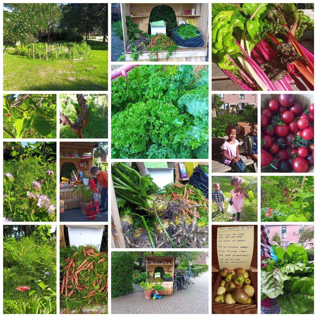 Tijdens het oogsten zijn de muurtjes ingestort het lijkt alsof er een groot monster door de tuin heeft gelopen. We hebben de tuin nu gesloten en denken erover hoe we het in het voorjaar weer op gaan pakken. De grote kast is verhuisd naar de weggeefwinkel in het begin van de Hylkmeheerd. Onder de carport heeft hij zijn plek gevonden. Tot in het voorjaar.